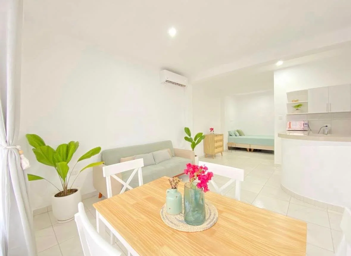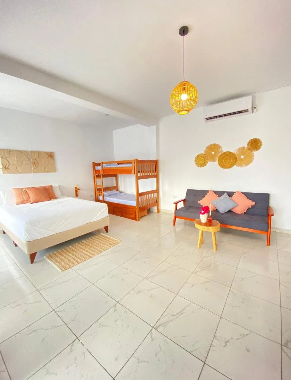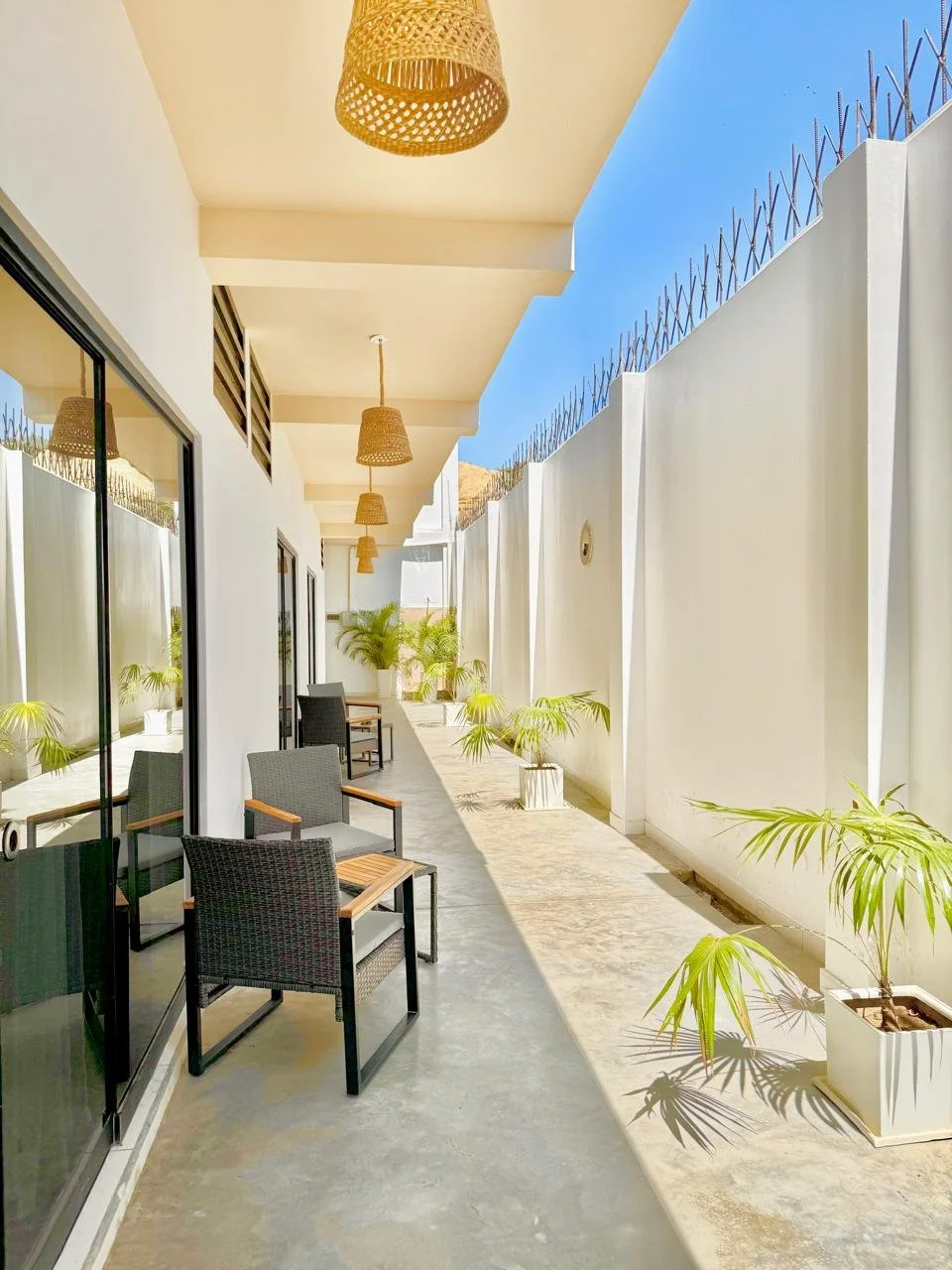 En el primer piso encontrarás la Suite Bugambilia, Palmera y Bamboo. Cada suite cuenta con un área de miniterraza, al aire libre.